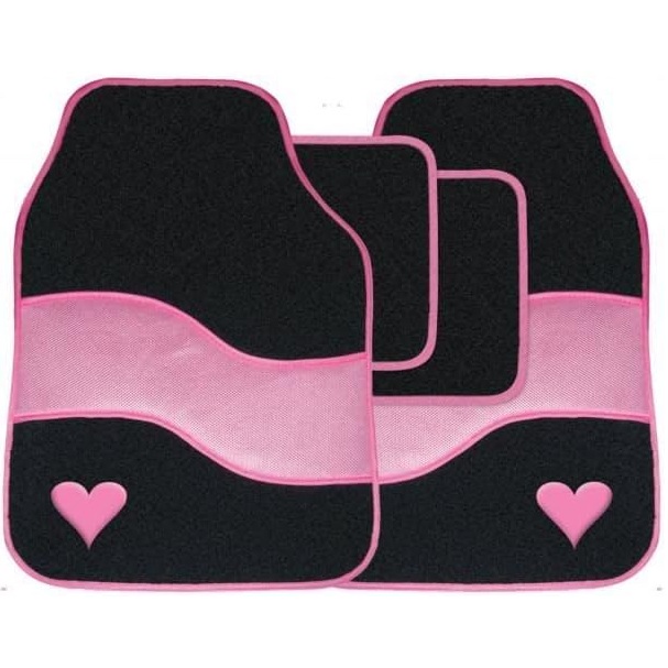 Streetwize Set of 4 Velour Pink Heart Motif Car