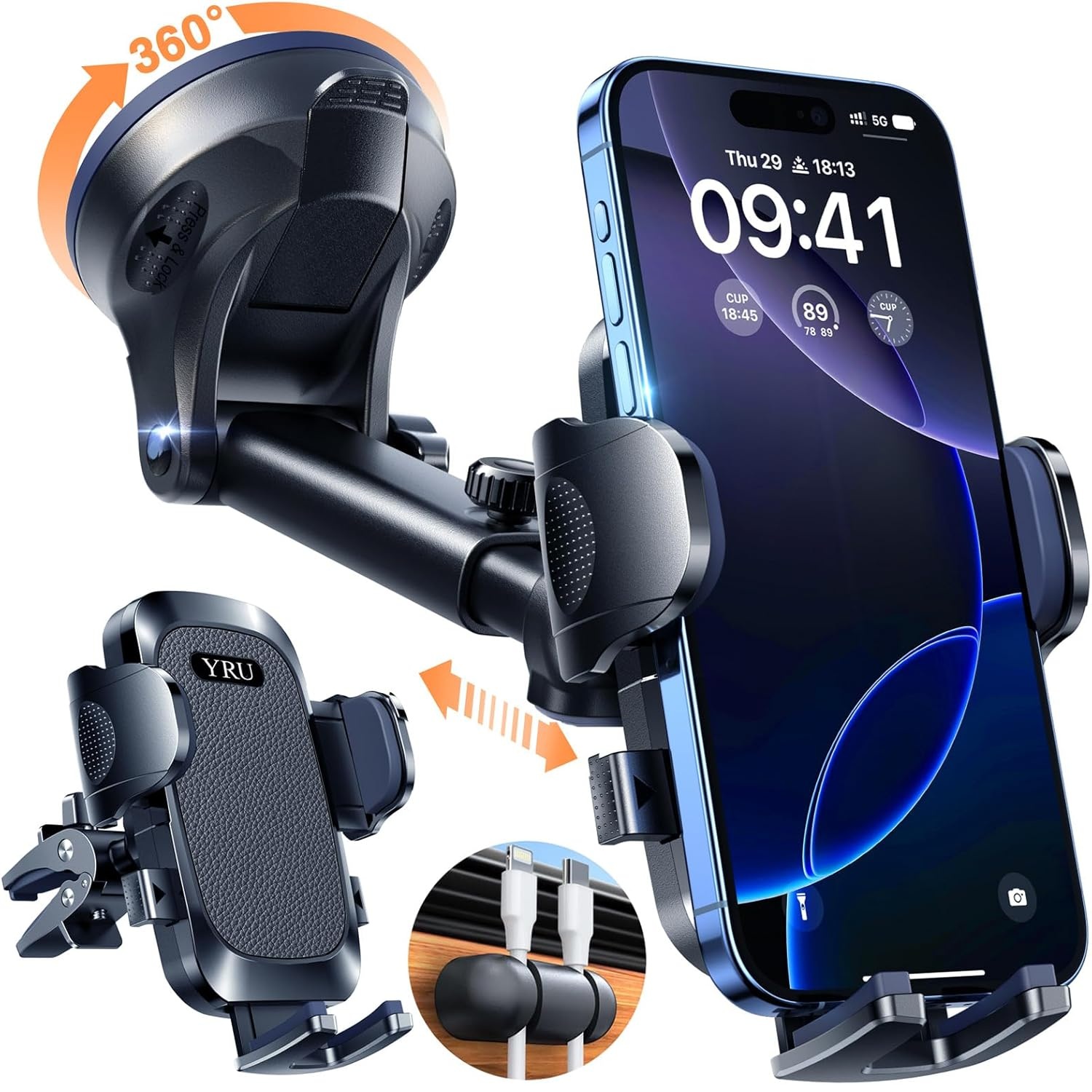• ๐Ÿฅ‡ใ€Invincible Rotatable 90LBS Black Sucker, 2025 Strongest – No Melt, No Yellowใ€‘Unlike ordinary white suction cups that easily yellow, freeze, or melt, ๐ŸŒžYRU uses UV-resistant black materials. Our upgraded rotatable black sucker with a 1-press lock is the strongest (PU Adhesive Diameter: 2.5โ€ โ†’ 2.9โ€, Suction Force: 60LBS โ†’ 90+LBS) and most resistant (-40~98โ„ƒ). Ideal for bumpy roads, heavy phones, and extreme weather. Easily removable with a tear-notch, washed๐Ÿšฟ clean and reused